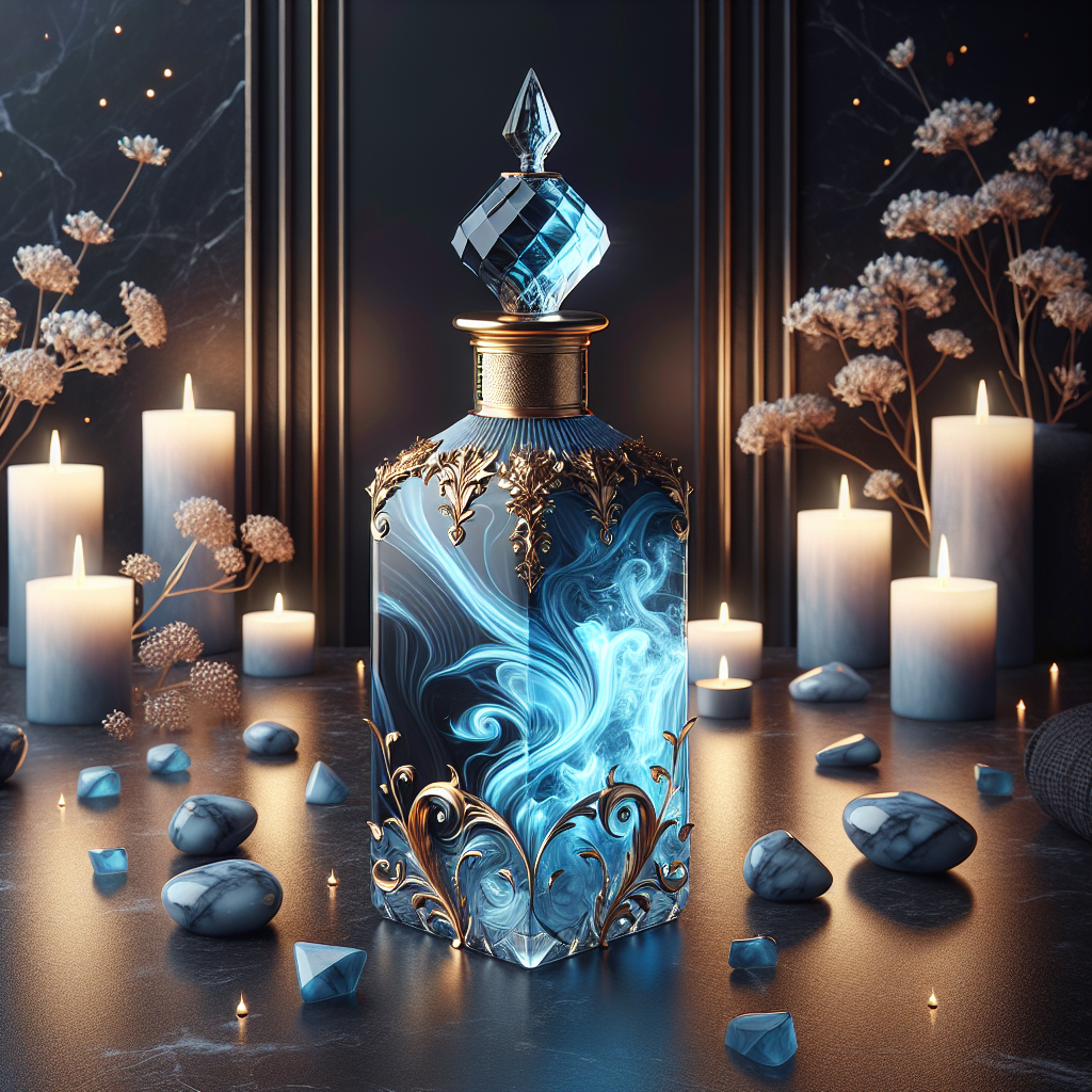 クリスタル瓶は透明なビー玉のような形状で、中には青い液体がきらめいています。ゴールドのキャップが添えられたこのエリクサーは、美しさと機能性を兼ね備えており、持っているだけでも心が豊かになる一品です。